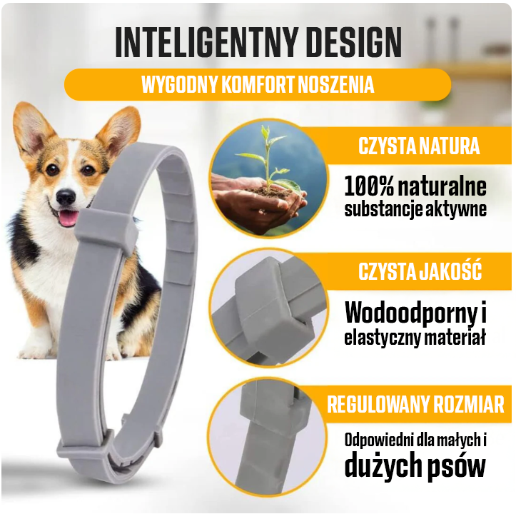 Wykorzystuje naturalne składniki aktywne (np. olejek lawendowy i eukaliptusowy), które skutecznie odstraszają pchły i kleszcze – bez szkodliwej chemii.